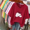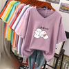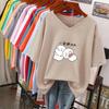 Short-sleeved T-shirt, Loose-fitting, Slimming Printed V-neck Top for Women