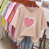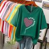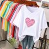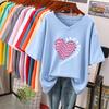 Short-sleeved T-shirt, Loose-fitting, Slimming Printed V-neck Top for Women