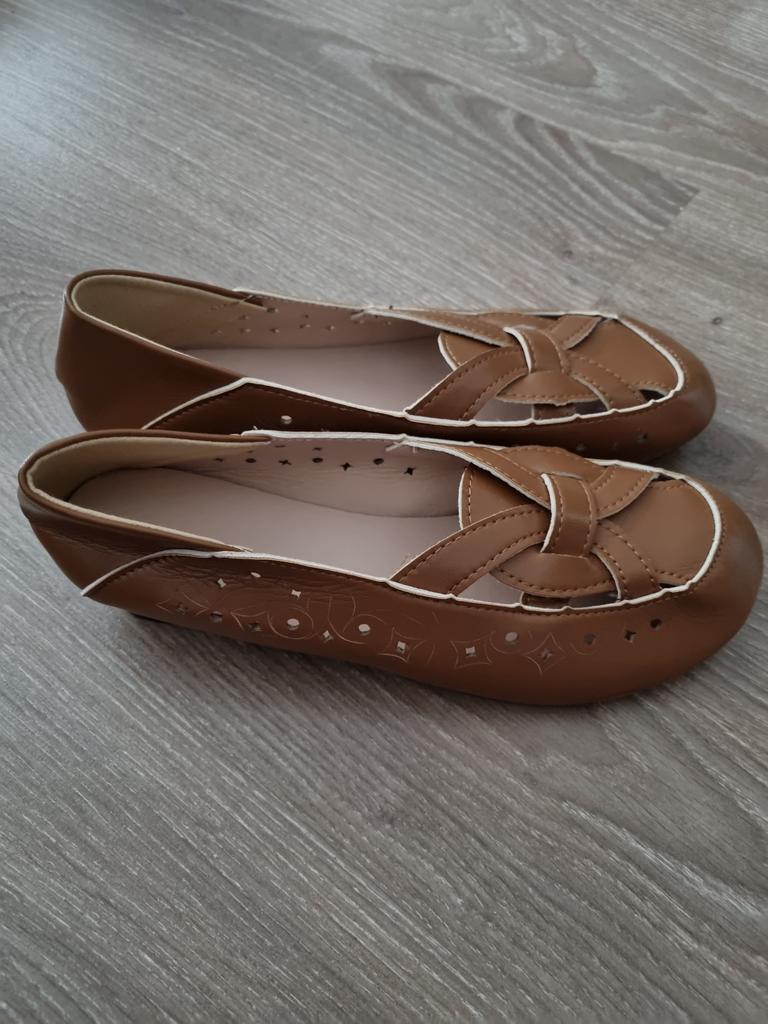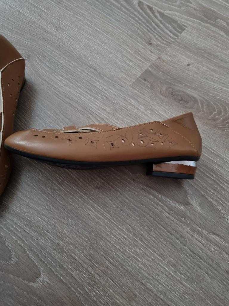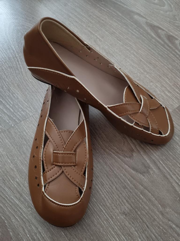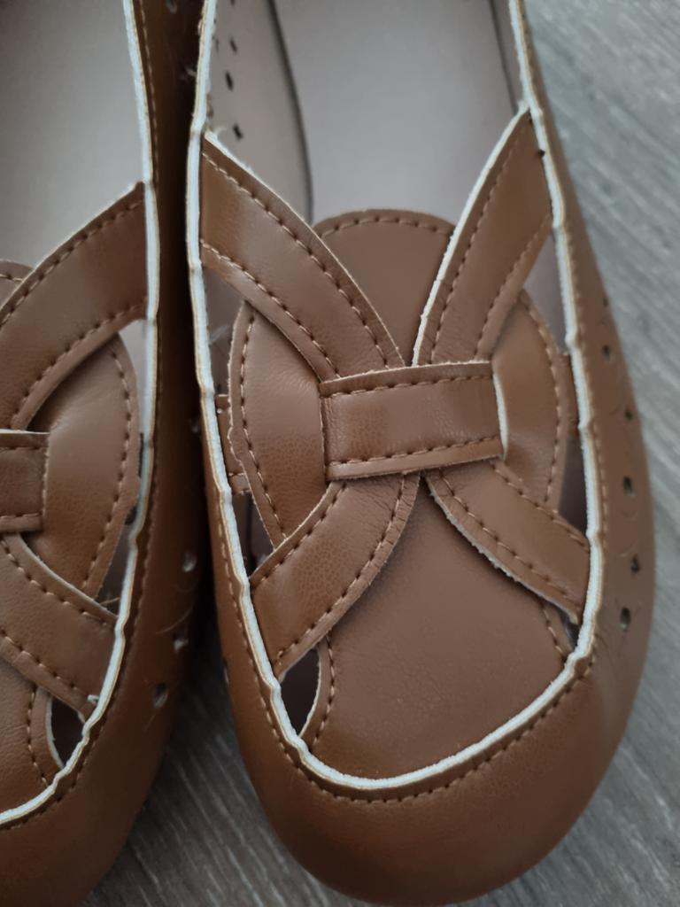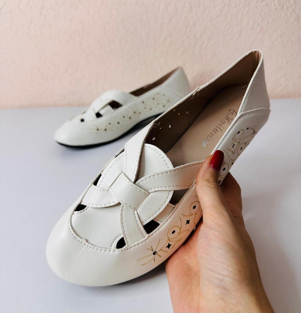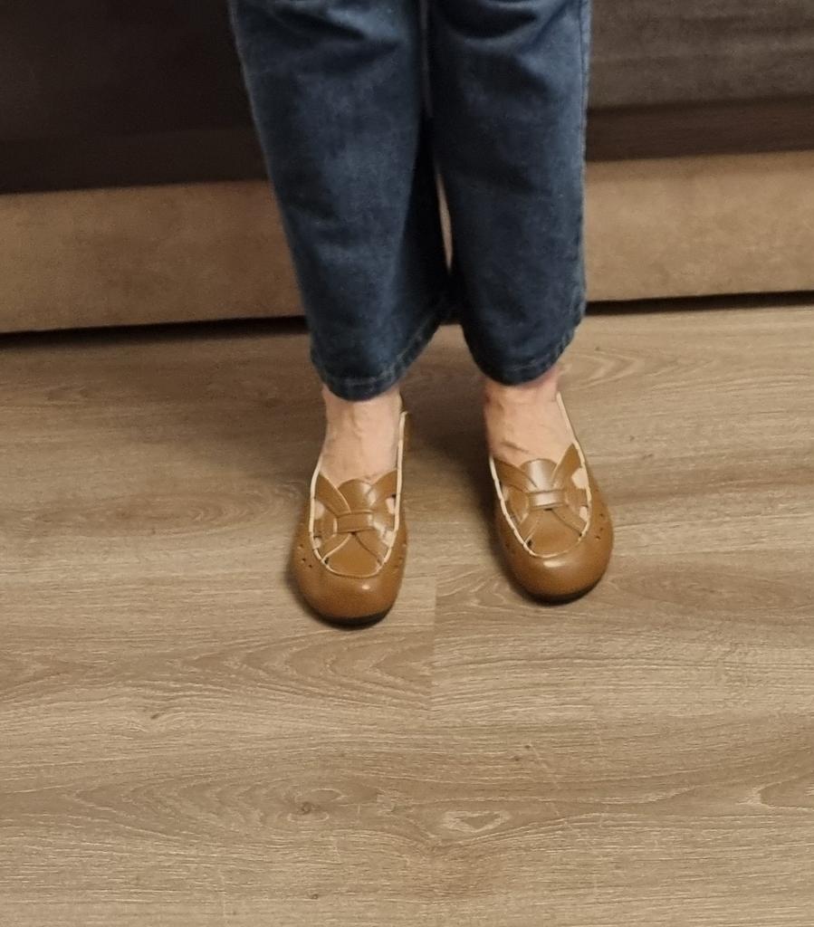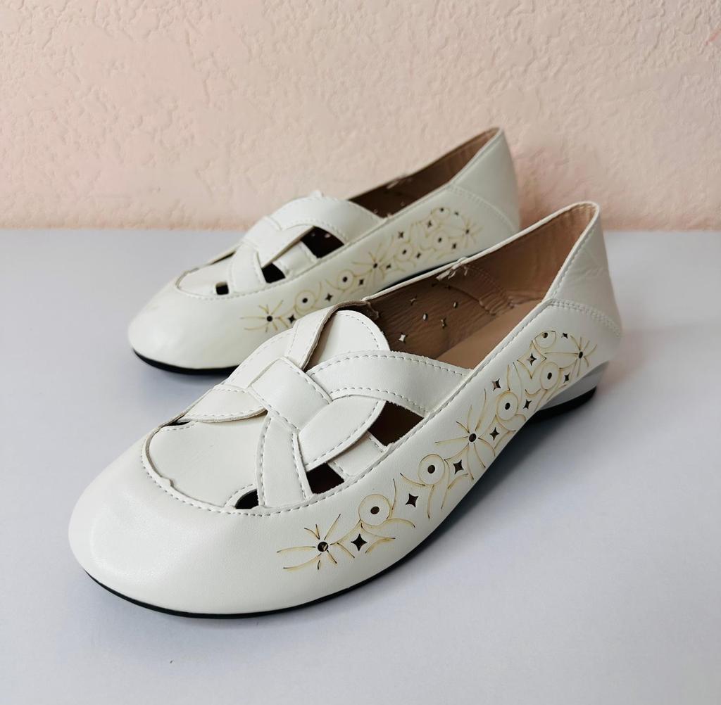 Lightweight and comfortable shoes🤍 White, soft eco-leather, sit very comfortably and elegantly on the foot. Suitable for warm spring and even summer. They are breathable, with see-through circles and rhombuses in the pattern on the sides, the top is also openwork. The insole inside is soft, as if it has foam inside, very comfortable for the foot. Small heel, good sole. I would definitely wear it)) Size 23.5 is slightly too big. Size 38 is perfect for a foot size of 24cm. It's not worth taking a larger size, they run true to size. Details shown in the video. Made neatly, factory-made. The price is pleasant. Not rough, the eco-leather is soft.. I highly recommend it 🧡