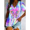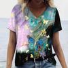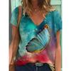 Summer V-neck 3D Creative Butterfly Gradient Printed Top Fashionable Casual Short Sleeved Women's T-shirts