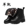 Autumn and Winter Leather Martin Boots Women's Flat-bottomed Velvet Thickened New Low-heeled Cotton Shoes Cotton Boots