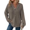 Waffle Knitted Drawstring Button V-neck Long Sleeve Women’s Hoodies & Sweatshirts