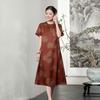 Red Brown Diagonal Mulberry Silk Dress Retro Red Cloud Yarn Printed Silk Skirt