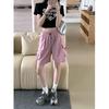 These versatile women's cargo shorts are designed for the summer of 2025, featuring a Korean-style aesthetic. Made from durable and lightweight polyester material, they offer comfort and breathability during warmer months. The high waistline and elastic drawstring waist ensure a flattering and adjustable fit, while the sportive design and practical pockets make them perfect for casual outings or active pursuits.