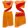 Girls Lyrical Dance Dress One Piece Sleeveless Sheer Mesh Patchwork Asymmetrical Hem Performance Costume