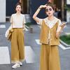 Summer Denim Vest Suit Women's Casual Lace Splicing Straight Jeans Three-piece Set