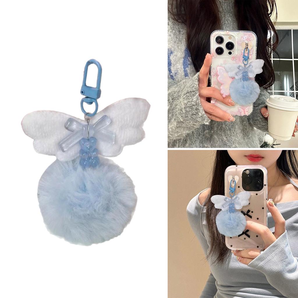 Plush Wing Phone Lanyard Lovely Bear Phone Chain Handmade Bowknot Keychain Backpack Pendant Camera Bag Accessory