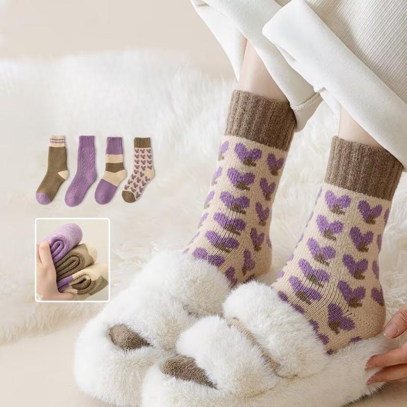 4 Pairs Women Wool Cashmere Lady Thick Winter Socks Warm Soft Solid Casual Socks