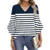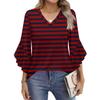 Women's Fashion Casual Seven-minute Sleeve Stripe Print Top V-neck T-shirt Flared Sleeve Shirt