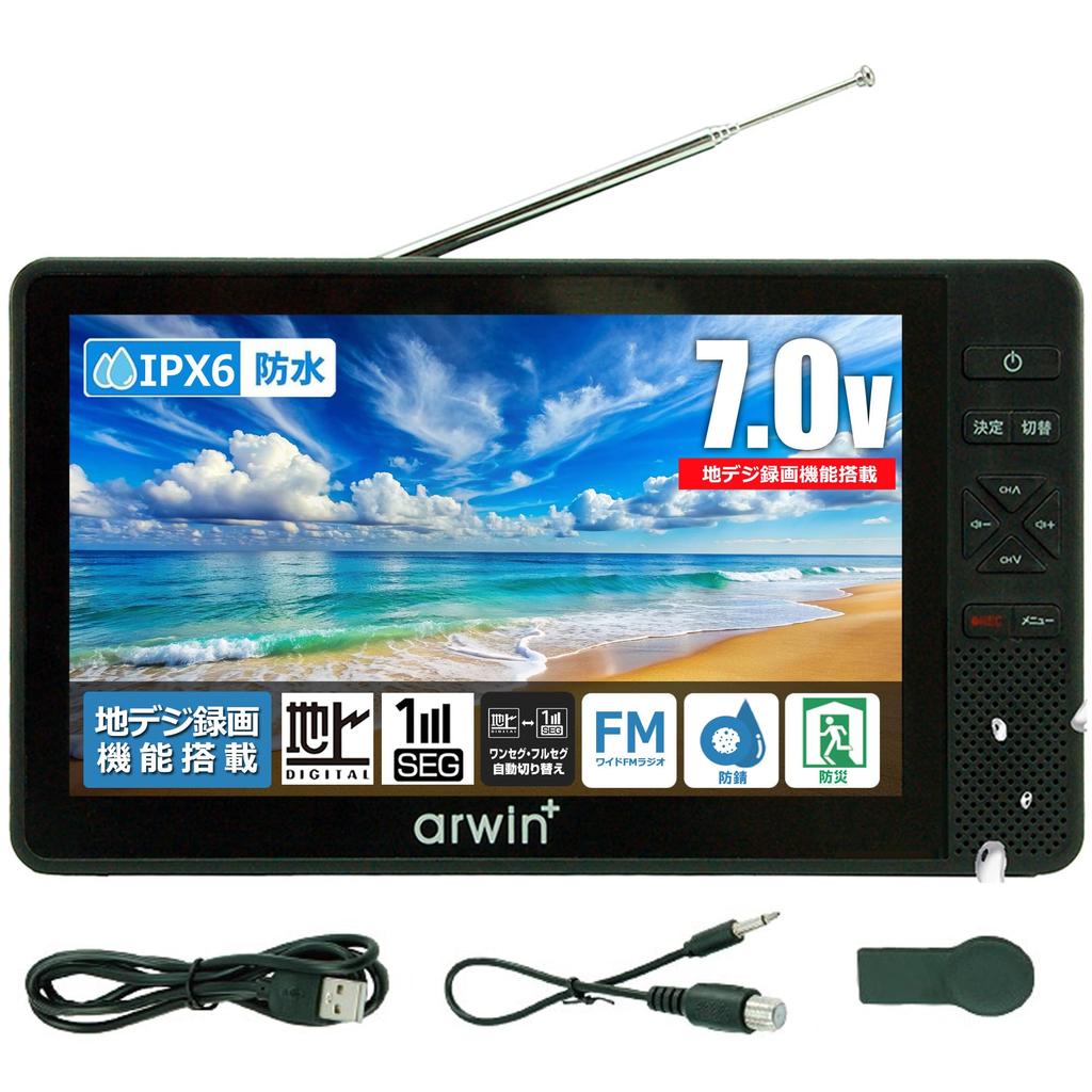 Tokyo Deco 7-inch Waterproof TV, Portable, Black, for Bath Use, with FMAM Radio, IPX6 Protection, One-Seg, Pocket TV, Portable, Disaster