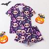 Ladies Pajamas Halloween Printed Lapel Short Sleeve Shorts Loungewear Set