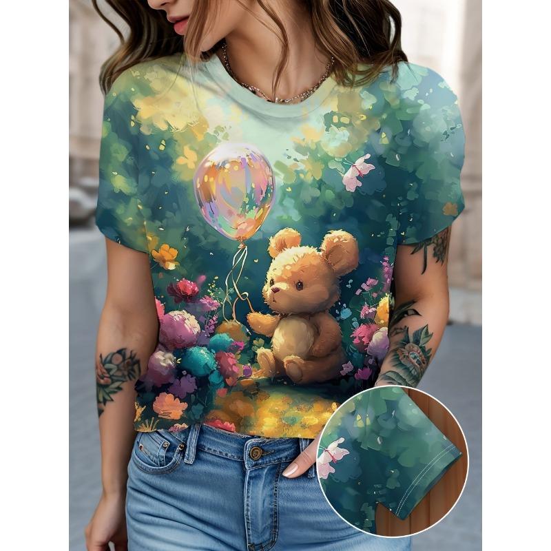 Ladies' T-shirt Cartoon Animals 3D Printing Fashion Women's Short Sleeve Round Neck Casual Comfortable Top