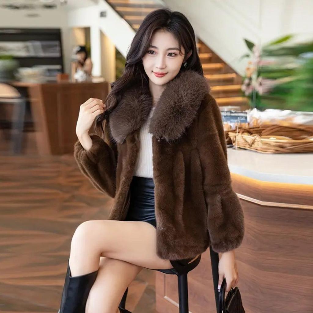 Autumn Winter Short Jacket Thick Warm Faux Fur Collar Elegant Female Warm Outerwear
