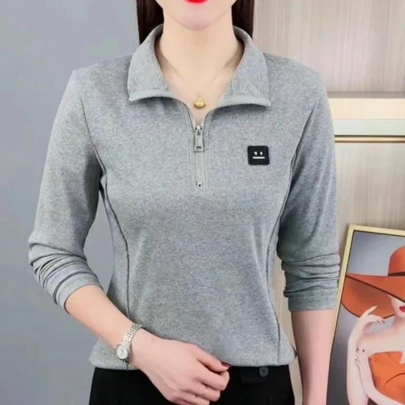 Polo Dress Women 2025 Spring Ashion Temperament Zipper Lapel Solid Color Casual Long-sleeved Polo Top Bottoming Shirt