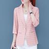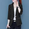 2023 New Spring and Summer Thin Fashionable Commuting Simple Casual Stripe Patch Pocket Versatile Three Quarter Women's Blazer