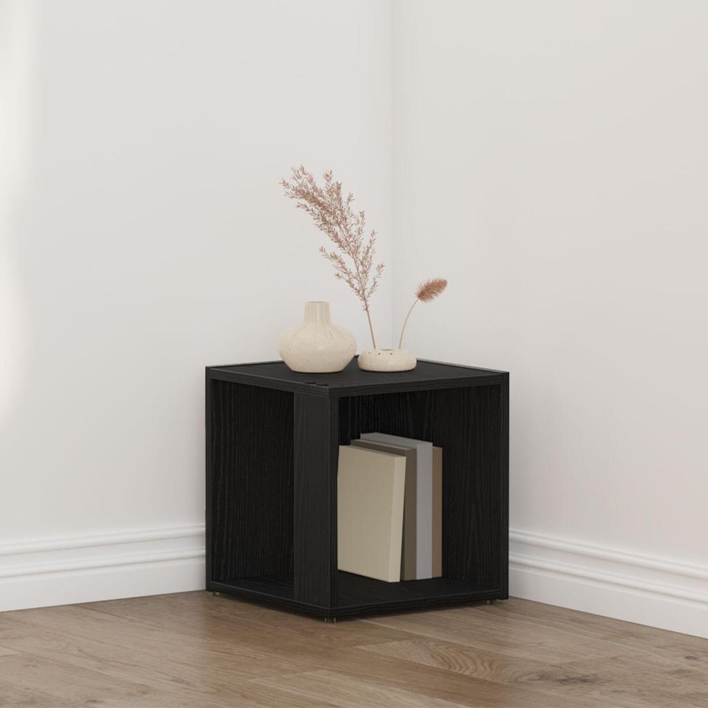 Beistelltisch Aus Schwarzem Eichenholz, Niedriger Nachttisch Im Schlafzimmer, Kreativer Niedriger Tisch Im Wohnzimmer, Maße 33x33x34,5 Cm