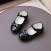 Kids Performance Shoes Black Glossy Students Trendy Girls Flat Shoes with Simple Bow 2025 New Children Leather Shoes Soft Sole