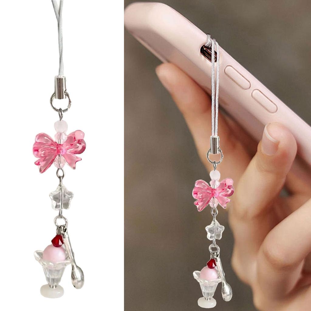 Ice Cream Theme Phone Lanyard Multifunctional Phone Strap Bag Pendant Resin Texture for Fashion Youthful Individuals