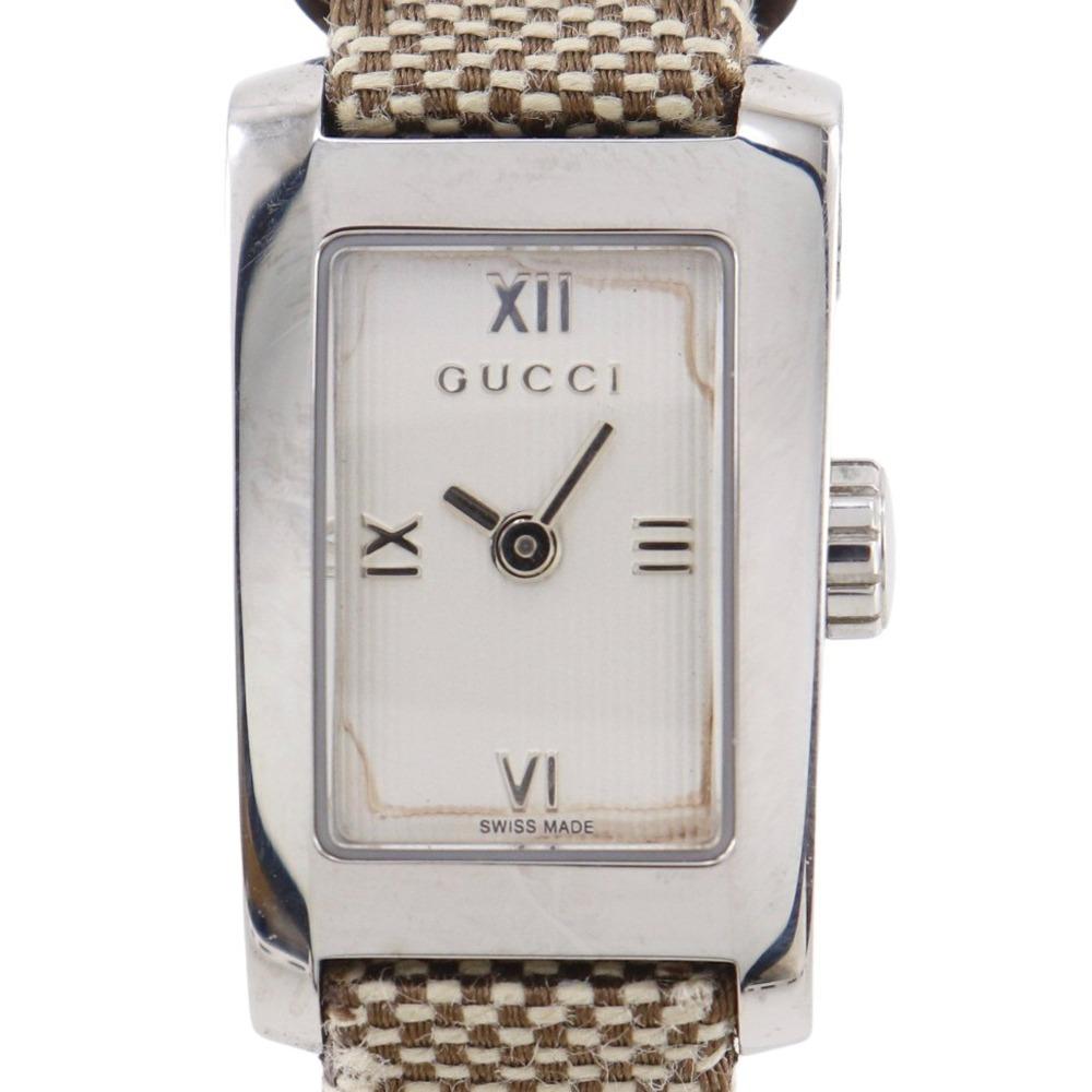 Gucci Watches 8600L WhiteDial Stainless Steel/GG Canvas Quartz Analog Display Women Used