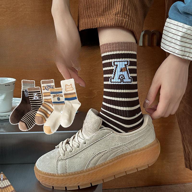 Female Spring and Autumn Tide Stripe Number Letter Tube Cotton Socks