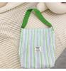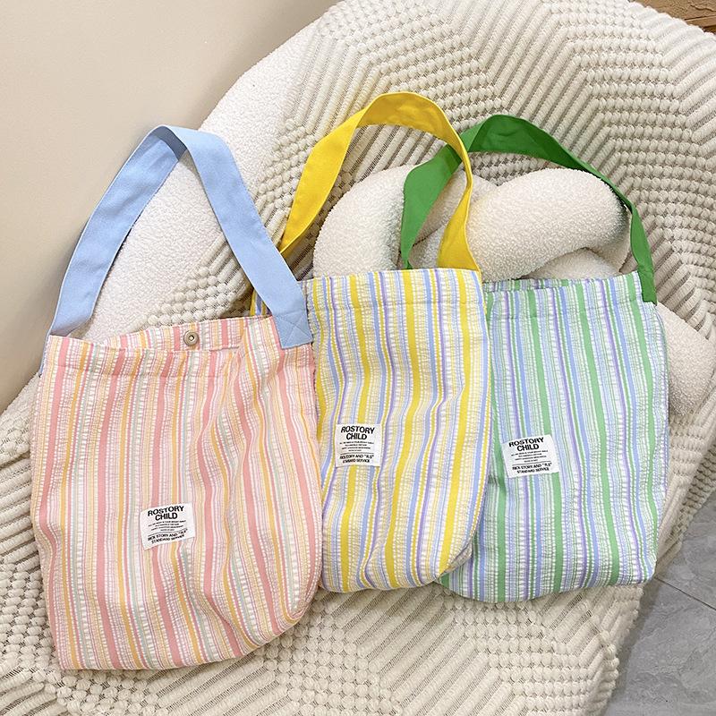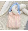 Pleated Striped Contrasting Shoulder Bag, Fresh and Versatile Large-capacity Canvas Bag, Female College Student Class Bag, Female Bag