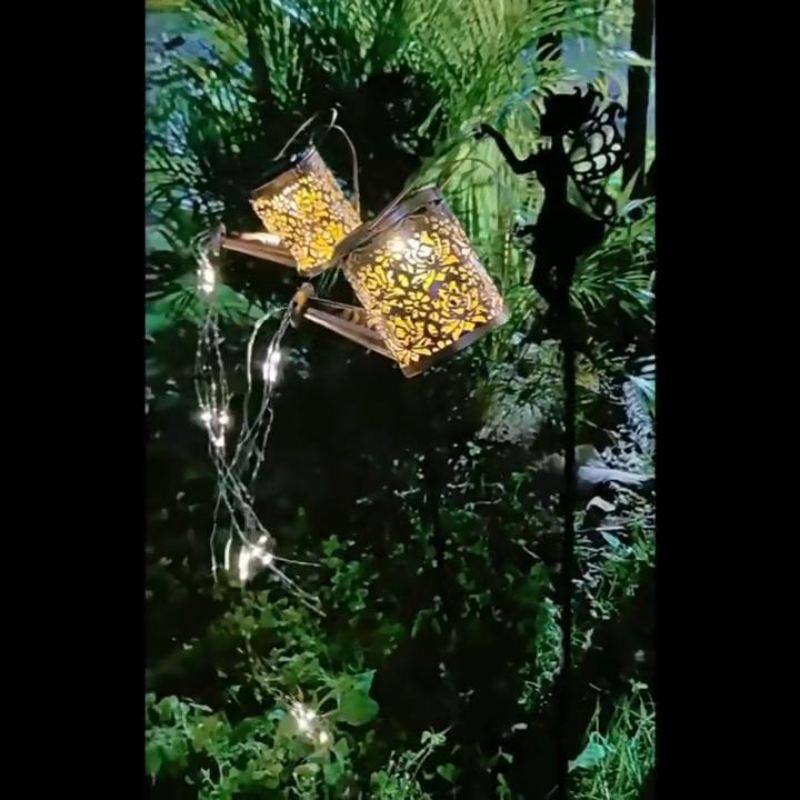 Solar Powered Watering Fairy Lights Vintage Metal Hanging Kettle Lantern Outdoor Garden Decor for Yard Patio Villa Decoration
