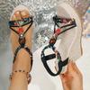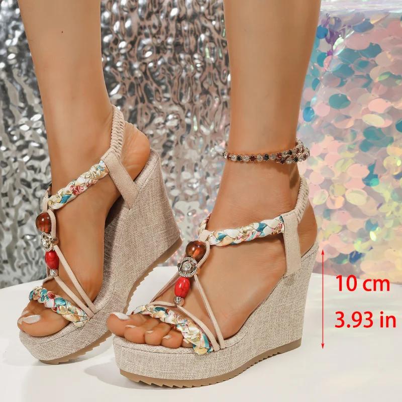 New Plus Size Bohemian Bead Wedge Sandals 2025 Summer Fashion Round Toe Open Toe Platform Elastic Band Ankle Strap Women's Shoes