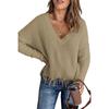 Autumn and Winter Fashion New Style Gray Cotton V-neck Long-sleeved Tassel Ripped Sweater, Casual Loose Blue Ladies Pullover Sweater Top AL6101