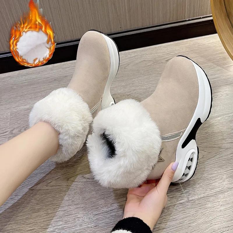 Plus Velvet Women's Boots, Thickened Snow Boots, Women's Winter Warm Cotton Boots, Plus Velvet Thick-soled Increased Short Boots, Ladies