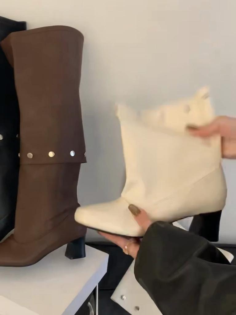 Eilyken 2026 New Winter Fashion Pleated Buckle Splicing Knee High Boots Women Square Heels Shoes Design Elegant Modern Long Boot