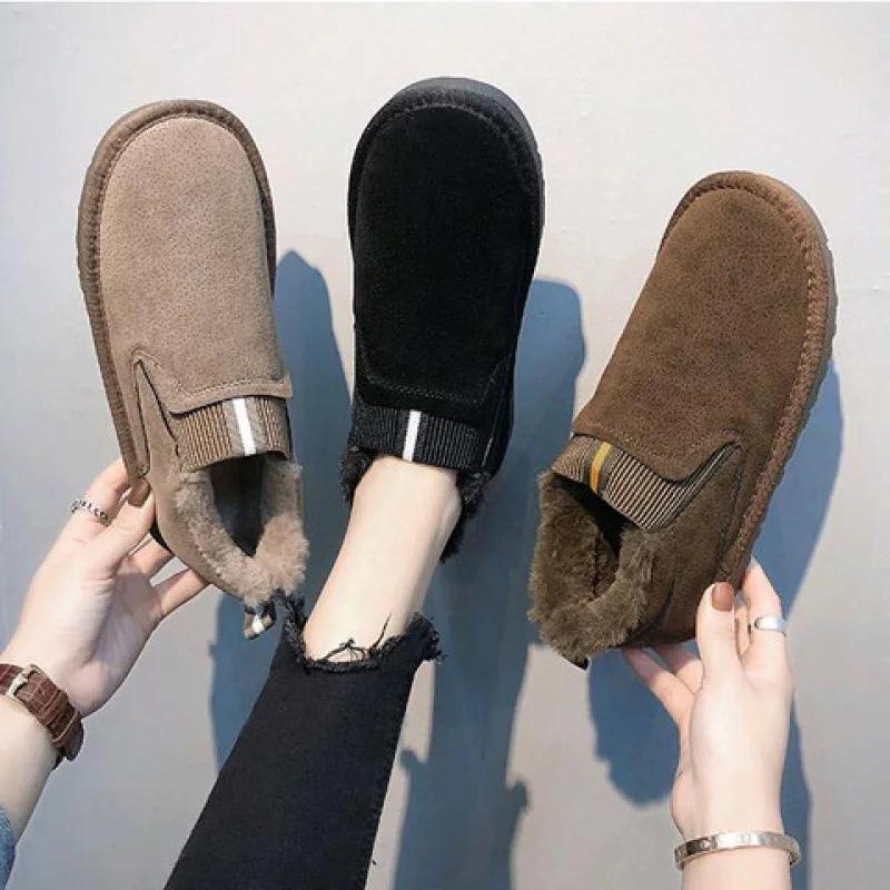 Women's Ankle Snow Boots 2024 Winter New Anti Slip-ON with Plush Thick Sole Student Cotton Shoes Platform Boots