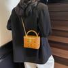 Fashion Popular Portable Box Bag Women's Soft Leather Retro Printed Shoulder Bag Versatile Commuter Chain Messenger Bag