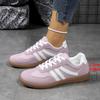 Step into comfort and style with these non-slip casual German trainer sneakers, specially designed for plus-size women. The upper is crafted from durable PU leather, providing a sleek and sophisticated look. These sneakers feature a rubber sole for excellent grip and stability, making them perfect for everyday wear. Inside, an artificial leather lining ensures a soft and comfortable fit, while the polyurethane insole offers excellent cushioning for all-day support. The lacing closure allows for an adjustable and secure fit, making these lightweight sneakers a practical and stylish choice for any casual outing.