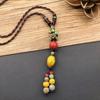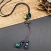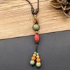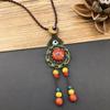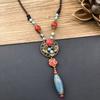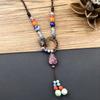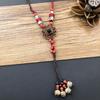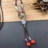 Retro Literary Cotton and Linen Ceramic Necklace, Women's Versatile Long Sweater Chain Fringed Pendant Accessories