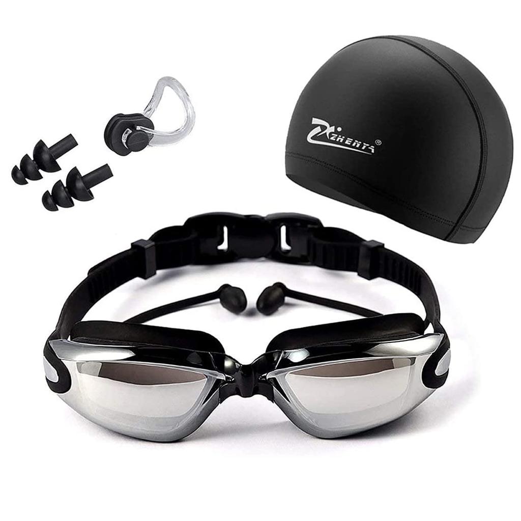 This set includes swimming goggles, a swim cap, a protective case, a nose strap, and earplugs, giving you everything you need for swimming.
