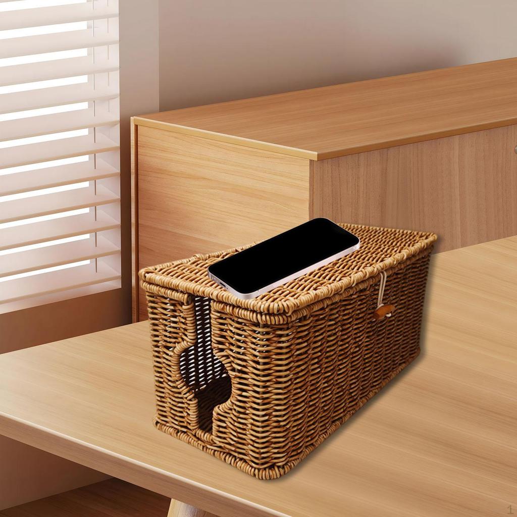 - 【Multi Function】: The woven imitation rattan cable management box helps to conceal and protect TVs, power cords, outlet apparatuses, protectors, charger, adapters, USB hubs, and power sockets, keeping all wires in order