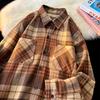 Autumn and Winter Hong Kong Style Shirt Loose Coat Grinding Long Sleeves Falling Shoulder Shirt Versatile Plaid Jacket