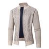 Young Casual Men Stand Collar Plus Velvet Thickened Cardigan Knitted Jacket Jacket Zipper Jacquard Knitted Thread Men