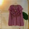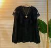 Women's Spring and Autumn Design Ruffle Neck Lace Splicing Top Long Sleeve Casual Covering Flesh Top