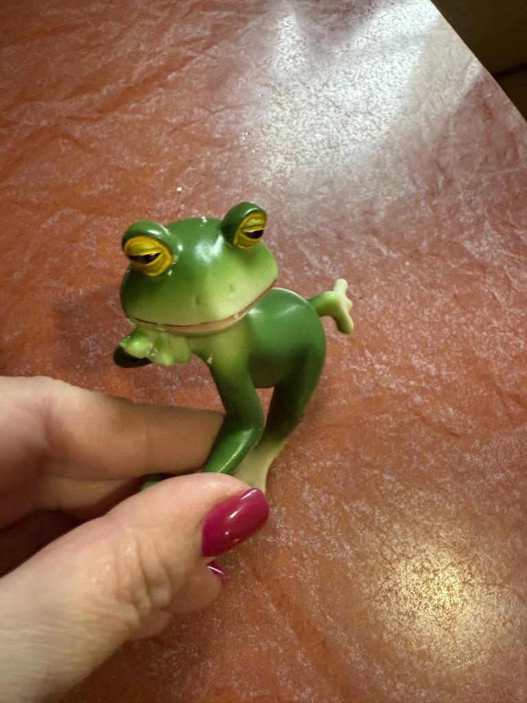 Frog figure for home or garden. ๐ธ Delivery time to Germany took 15 days. The product was well packaged and arrived undamaged.. The product is available in 5 variants to choose from. I selected this one and it is exactly as described. 5 stars! Thank you! No disadvantages noticed! Very nice decoration thing!๐ฅ