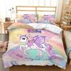 Rainbow Unicorn Bedding Set Colourful Flowers Duvet Cover Comforter Linen Pillowcases For Girls Gift Single Double King Queen