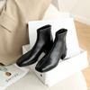 Leather Thin Boots Women's Korean Version Square Head Short Boots All Cowhide Versatile Short Boots Retro 2025 Autumn and Winter New