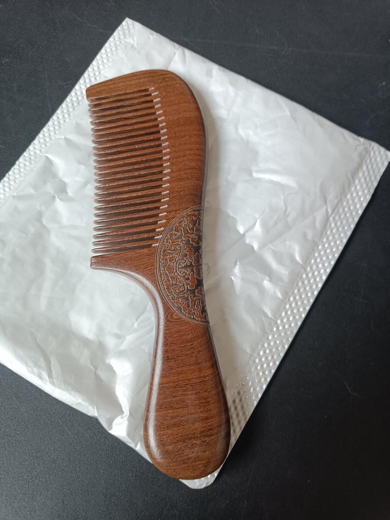 This is a good comb, so pleasant for the hair and scalp. I tried combing my hair with a sandalwood comb once, and since then I only buy sandalwood ones. Sandalwood is even smoother to the touch than other wood, and the hair combs easily.