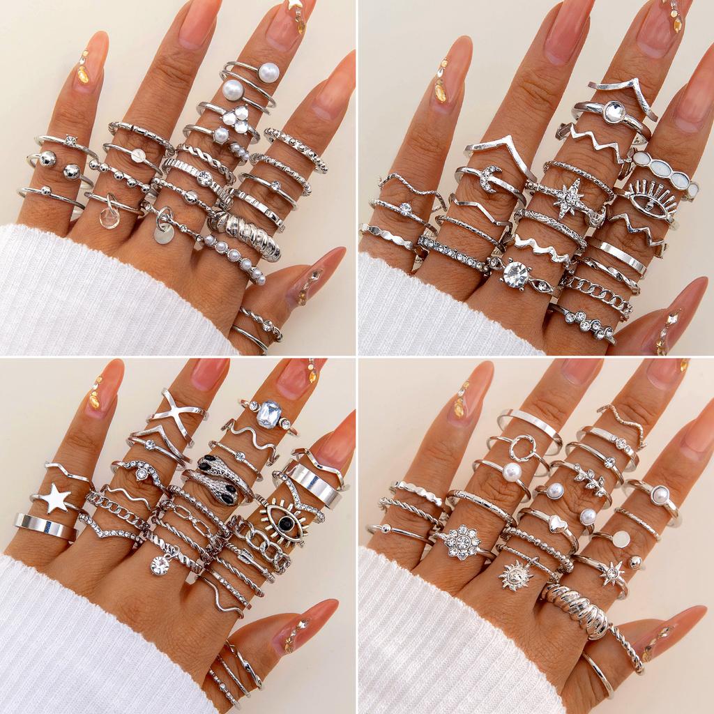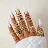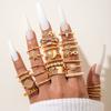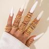 Fashion Jewelry Vintage Carved Sun Feather Cross Black Gemstone Ring Multi-piece Set Set