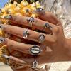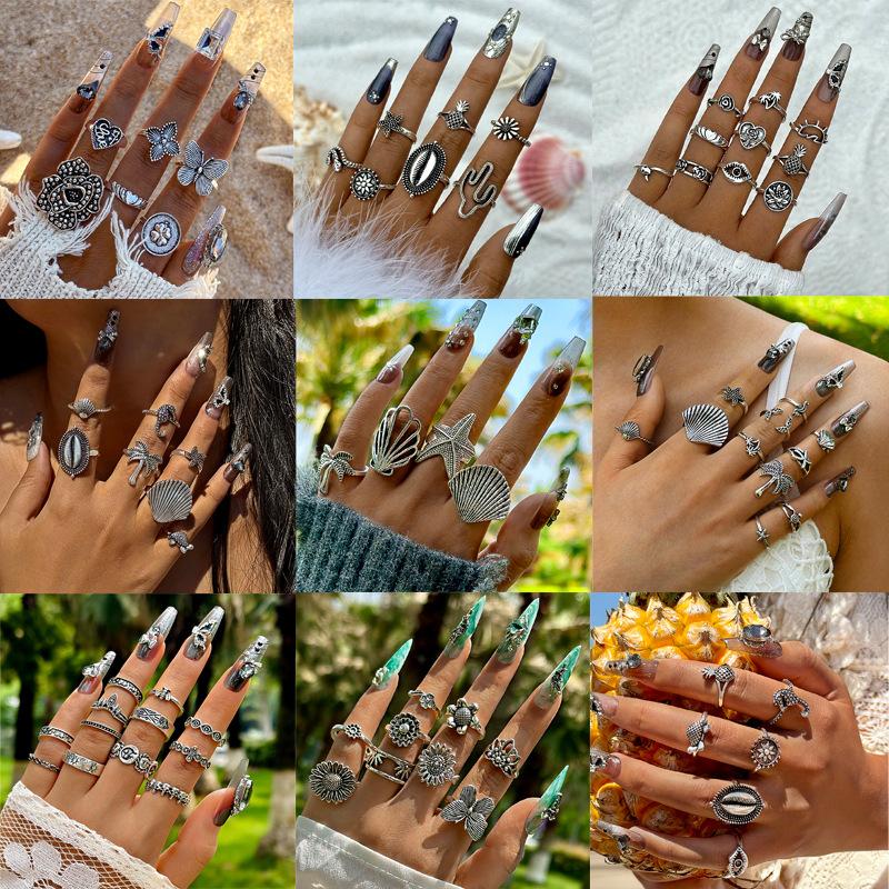 European and American Bohemian Starfish Scallop Ring Beach Style Coconut Tree Butterfly Carved Vintage Ring Set