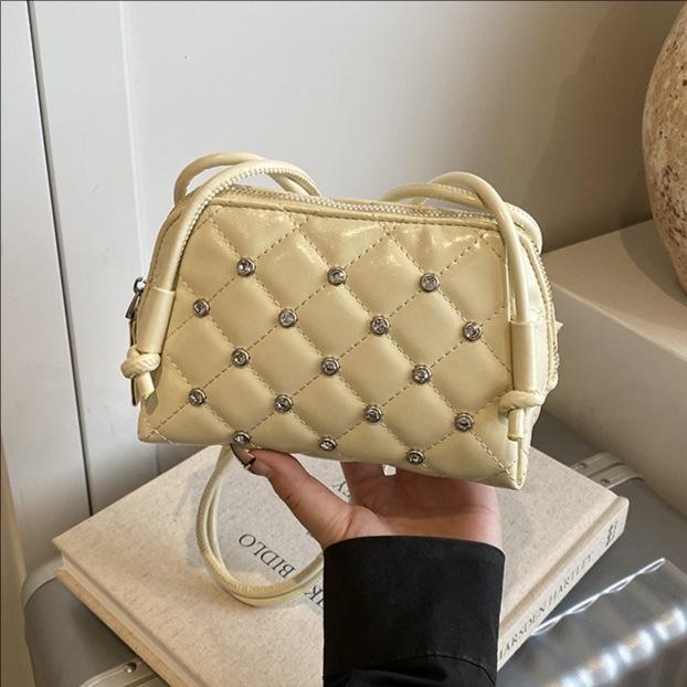 Quilted & Studded PU Shoulder Bag: Weighing 0.16kg, it features a quilted PU texture with studded details, a unique knot - design shoulder strap, and supports single - shoulder or cross - body wear (140cm adjustable strap). Perfect for adding a trendy, edgy touch to daily outings, parties, or casual gatherings.