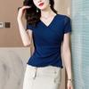 This Women's Mesh Ice Silk Short Sleeve Tee is crafted from high-quality cotton for a breathable and comfortable fit. Featuring a slimming chic design, this top is perfect for summer days. Its solid pattern and V-neckline provide a classic and versatile look, while the unique patchwork and quilted decorations add a stylish and modern touch. With its short sleeves, this tee is perfect for staying cool and fashionable all season long.