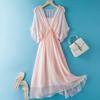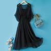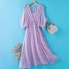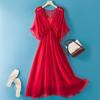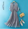 Women's Summer Long Silk Dress with Ruffle Edge - Simple, Solid Color
