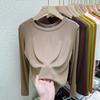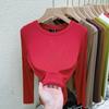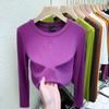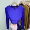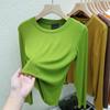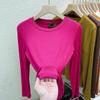 Women's 2025 Ribbed Long Sleeve Round Neck Fashionable Base Layer T-Shirt for Spring and Autumn