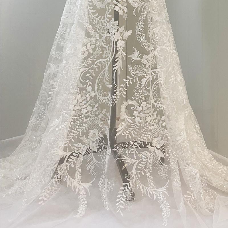 European Princess Evening Dress: Exquisite Full Embroidery Lace Mesh Fabric